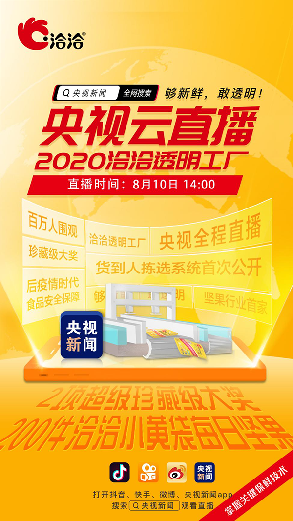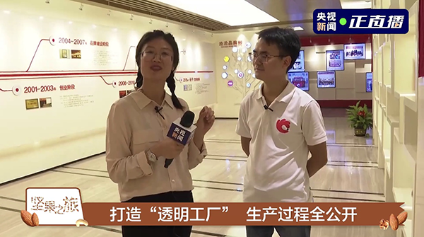 10日14点,央视新闻在微博、抖音、快手以及央视新闻客户端,4大新媒体平台上同步对冰球突破豪华版下载app透明工厂进行直播,2.6亿粉丝通过央视新闻的镜头深入冰球突破豪华版下载app内部,与企业领导、工厂厂长直接对话,更直观的感受冰球突破豪华版下载app的企业文化和先进技术,见证新鲜品质坚果的诞生。