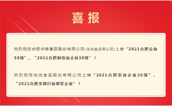 冰球突破豪华版下载app食品股份有限公司上榜“2021合肥农业企业20强”、“2021合肥全国行业领军企业”!其中,冰球突破豪华版下载app更是在2021合肥全国行业领军企业排行榜中的坚果炒货行业排行第一!